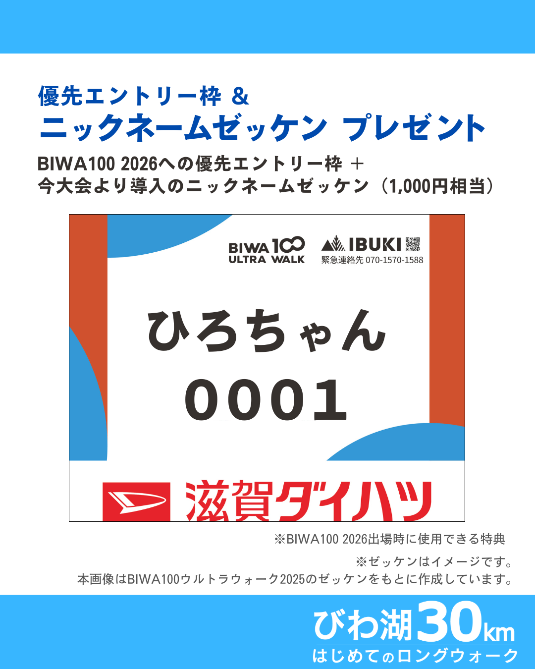 特典② BIWA100 ULTRA WALK 2026 優先エントリー枠